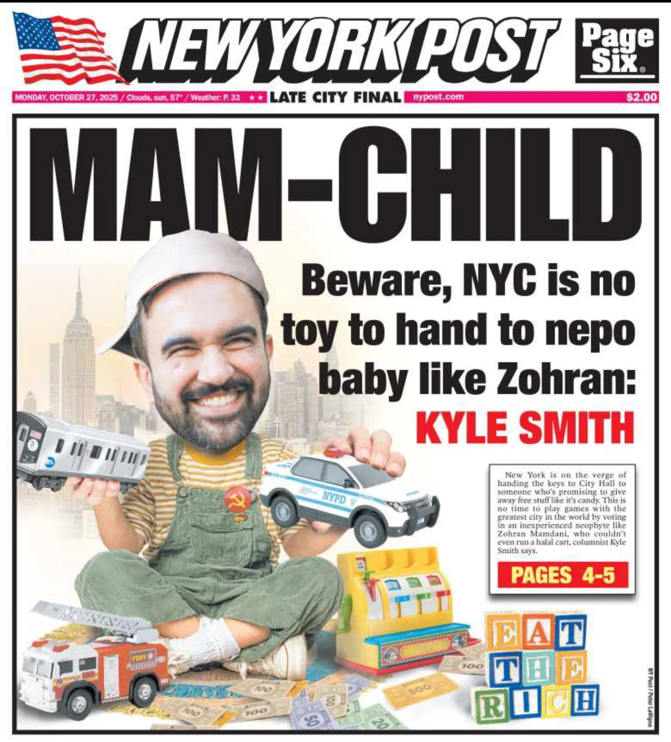 "Hitler learned genocide from Abraham Lincoln. I'm sure Zohran loves America though. Nice job NYC."