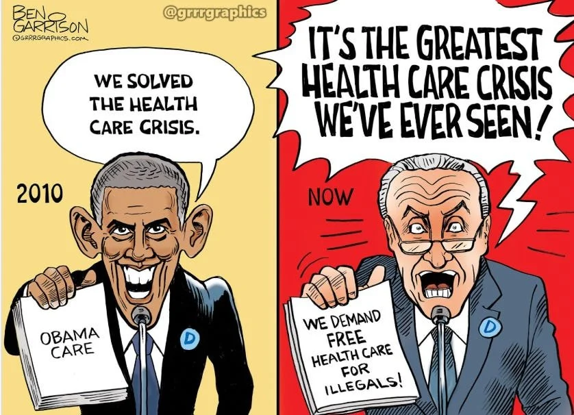 * Obamacare: if you like your doctor, you can keep him, or it will be great, and it will lower your costs. By the way, the Democrats passed it, and Pelosi said that they “had to pass the bill to see what is in it.”