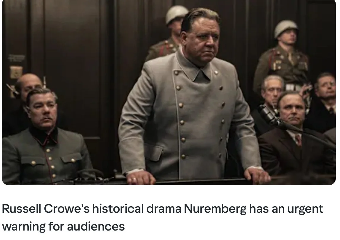 Disclaimer: I am not presenting to you a movie review, and I am not a Jew. You can read a review at: The true story behind Russell Crowe's Nuremberg and the facts missed out - Yahoo Movies UK I do think that Crowe’s personification of Goering was excellent.