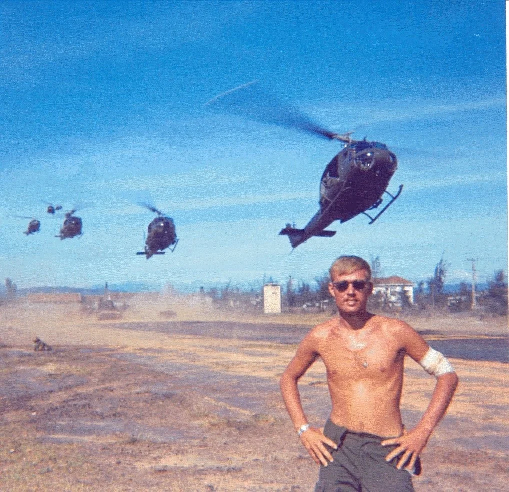I still love the sound of a Huey… ” Whop, whop, whop!” I remember staggering with others wounded but able to walk to the Med Station and waking up two days later, only to be transported to the hospital in Chu Lai.